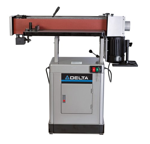 With the W1688 edge sander, Shop Fox delivers a good budget machine with some appreciated features but it falls short on the overall finish and fine details of the machine. Weighing 311 pounds, the W1688 presents a very durable body with shielded and lubricated ball bearings to provide a longer life even though it has a rough finish when it comes to paint and other details. The 1.5HP motor powers the 6-by-80 Inch sanding belt that runs at a maximum 1,800 SFPM. While it lacks in belt speed, the W1688 offers advanced features such as belt tracking, a quick release lever for speedy belt changes, work tables that use a miter gauge and can be tilted for angle sanding and a 4-inch dust port that can be connected to a vacuum to effectively remove wood and abrasive dust from your work area. It’s a good budget sander if you can overlook the rough finish.